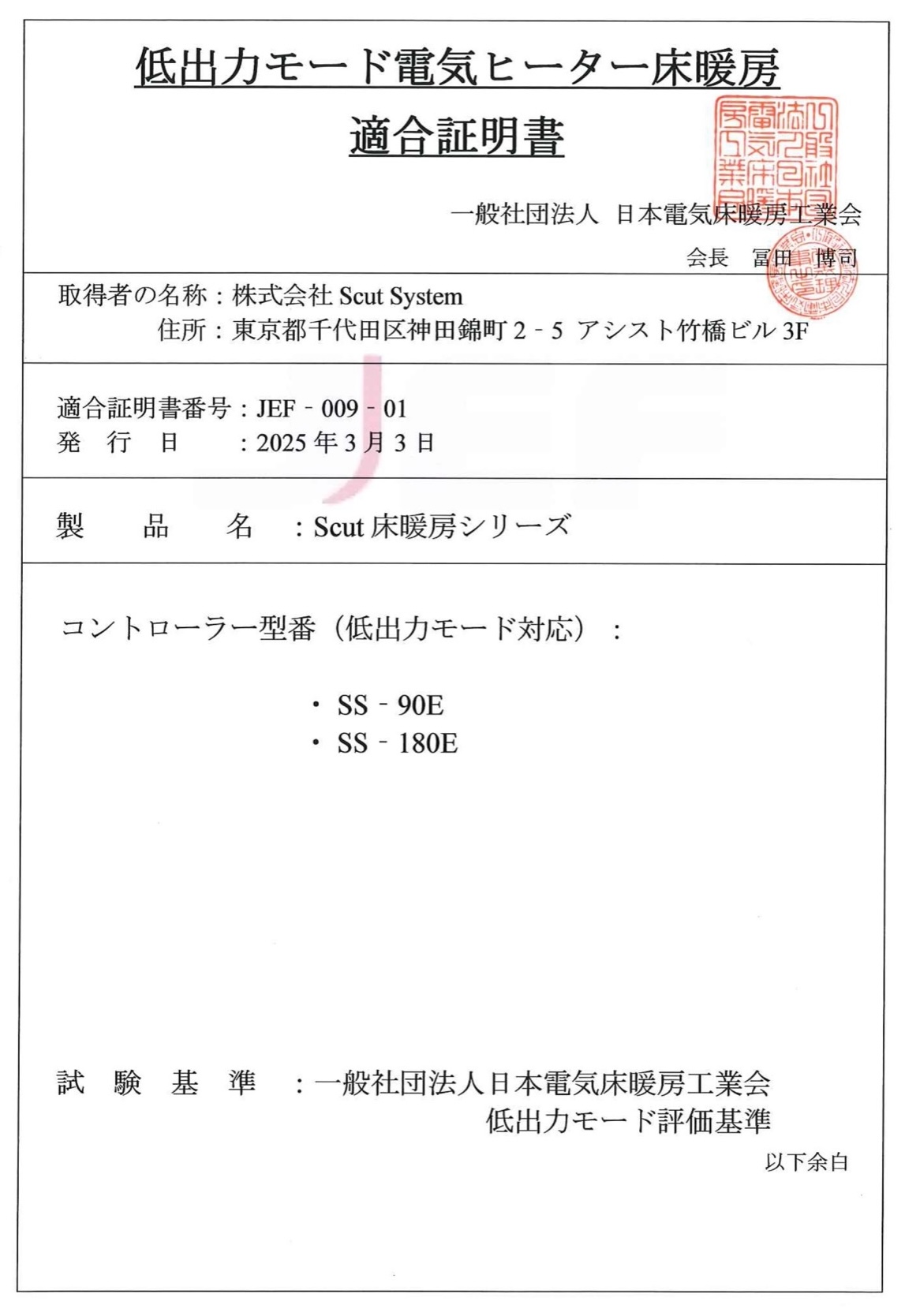 弊社の電気式床暖房システムでは、エネルギー効率を向上させる「低出力モード」に対応したコントローラを提供しております。